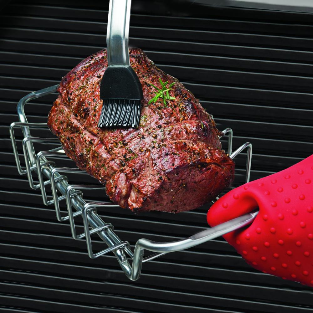 A rácsnak köszönhetően a bordák könnyen és gyorsan átsülnek, és megakadályozza, odaégjenek a rostélyhoz.