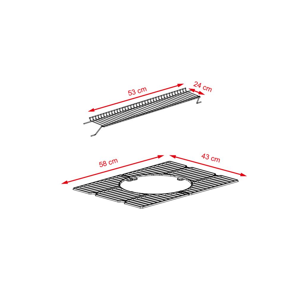 | Praktikus tárolórács a grill alatt és összecsukható oldalsó polc | |