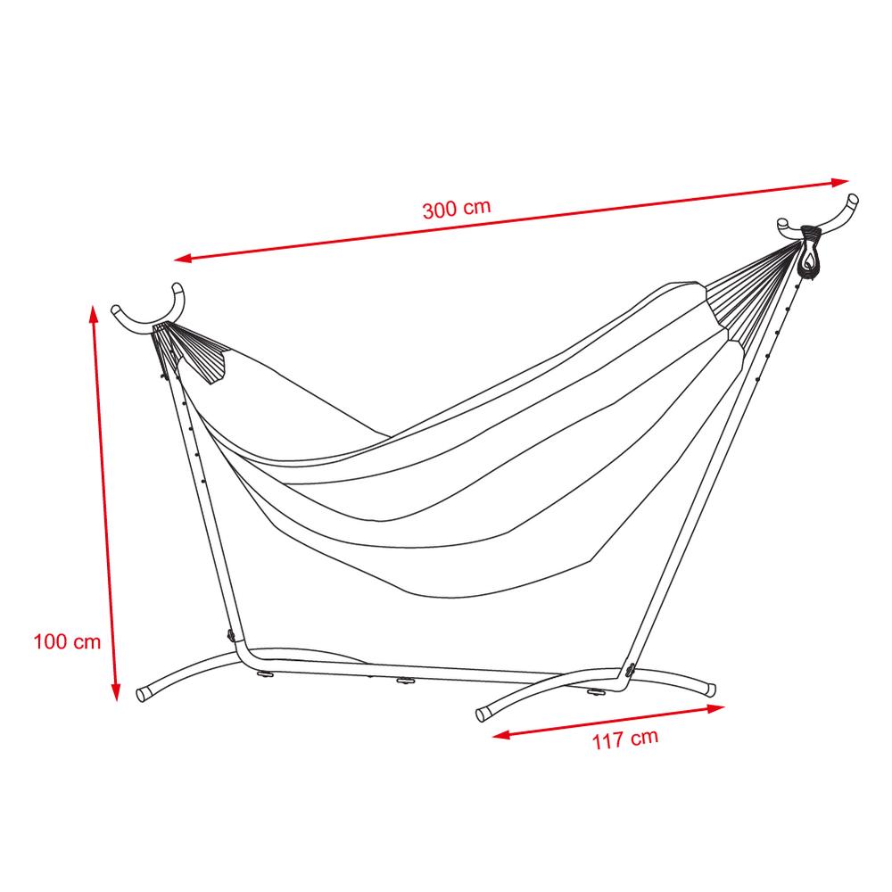 A függőágy állványának kialakítása biztosítja az egyszerű összeszerelést és elhelyezést bárhol a szabadban. |