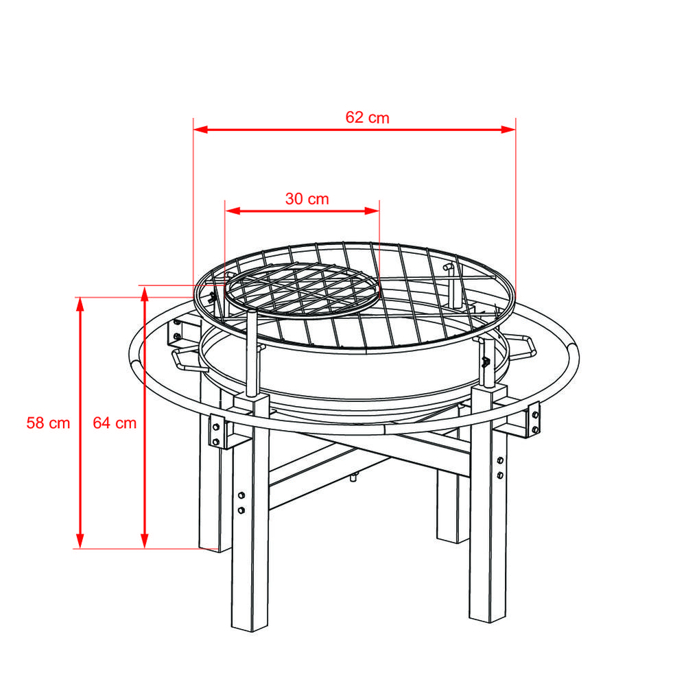 | Levehető tűzrakóhely, mely két praktikus fogantyúval rendelkezik a könnyű tisztítás érdekében. | |