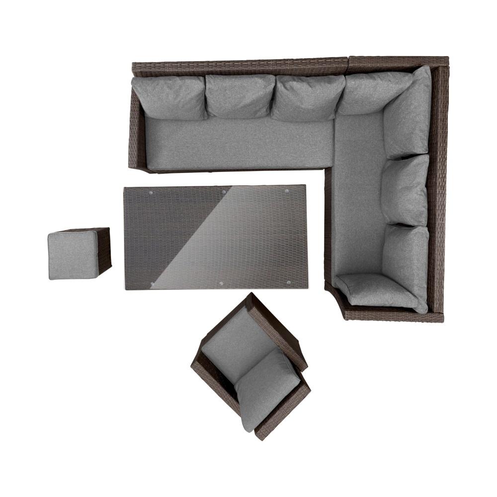 A garnitúra jelentős tulajdonsága a tágassága, kellően kényelmes ahhoz, hogy akár 8 személy is kényelmesen elférjen rajta. Tökéletes étkezőgarnitúraként, például ha ebédet vagy vacsorát szolgálna fel a teraszon, de tökéletes egy nehéz nap utáni pihenésre és kikapcsolódásra is.