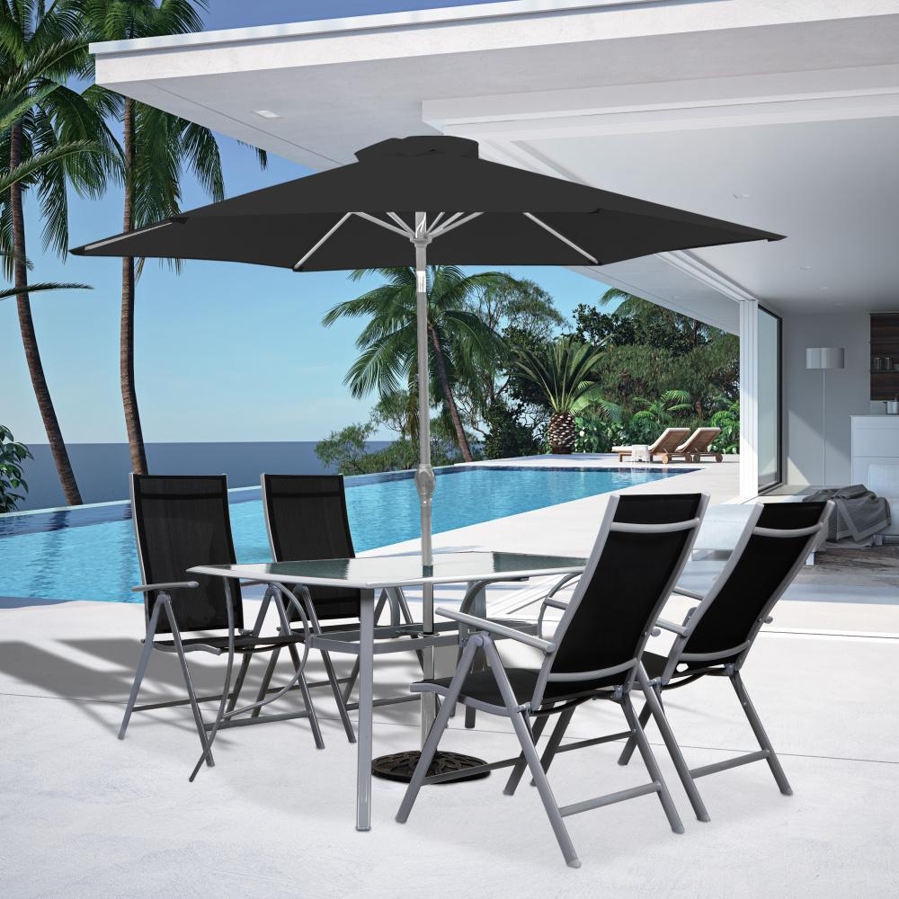 Nagy családi kerti szett 4 állítható székkel, egy asztallal és egy nagy, állítható napernyővel