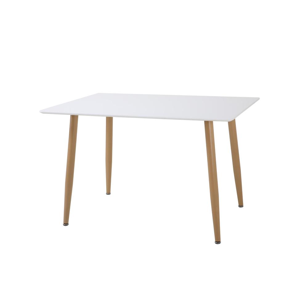 Modern dizájnos KARUP étkezőasztal 120 x 80 cm-es méretekkel. Lábak natúr fa színben. Fehér asztallap 2 cm vastagsággal. Az asztal alkalmas konyhába vagy étkezőbe. Ehhez az asztalhoz fából készült lábakkal ellátott székeket ajánlunk.