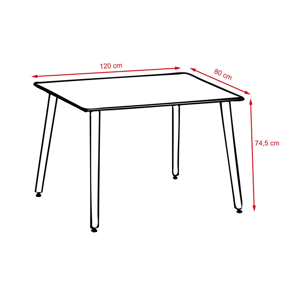 asztal mérete: 120 cm x 80 cm x 74,5 cm