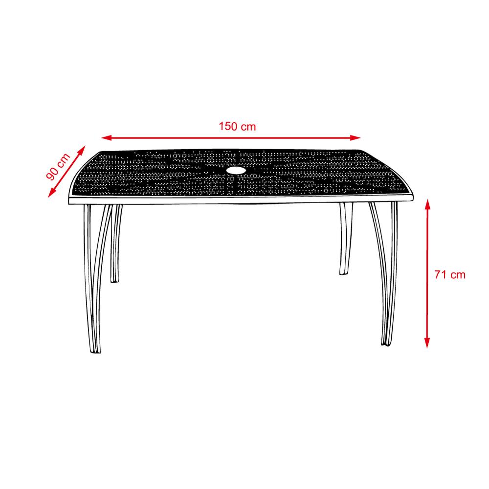 Tágas 150 × 90 cm-es asztal a kényelmes étkezéshez |