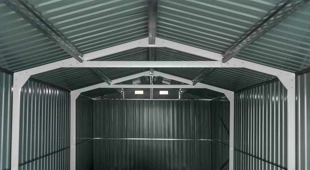 Kiváló minőségű kerti házak a robusztus konstrukció és a magas szintű kidolgozást értékelő vásárlók számára. Ráadásul a házak teljes egészében tűzihorganyzott fémlemezből készülnek. Ez egy klasszikus, legmagasabb minőségű horgonyzási technológia, amikor az acéllemezt rövid időre olvasztott cinkfürdőbe merítik, amely aztán vékony rétegben az acél felületén marad. A ház használható szerszámok tárolására és legfőképpen garázsként.
