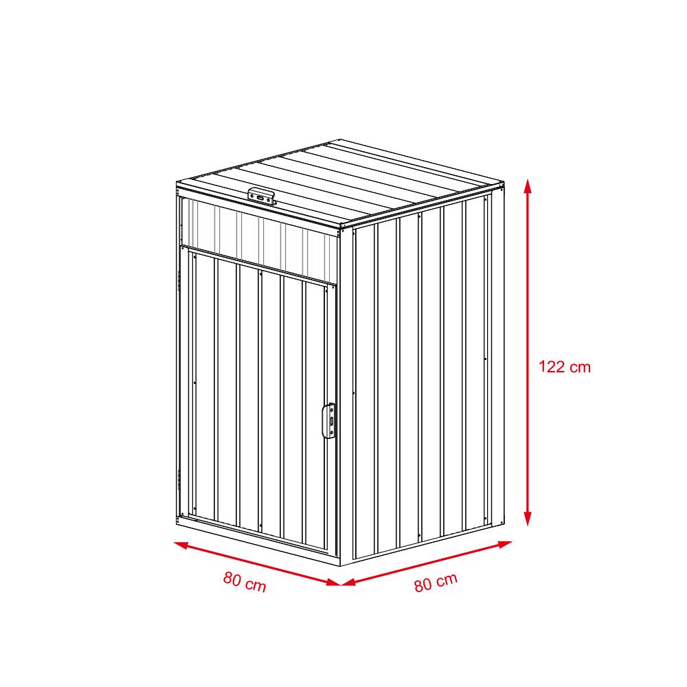 A praktikus kukatároló tökéletesen eltakarja és tárolja a maximum 240 literes szemetesládákat. Nem csúfítja a kertet, szép tiszta környezetet teremt. A horganyzott acélból készült kukatartó zárható és rendkívül jól ellenáll az időjárás viszontagságainak. A hasznos szellőzőnyílások lehetővé teszik a levegő keringését, így megakadályozza a kellemetlen szagok kialakulását. A zárrendszer biztosítja a hulladék biztonságos tárolását.