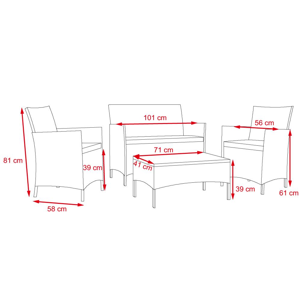 kerti széket, egy kényelmes kanapét és egy edzett üveglappal ellátott elegáns asztalt tartalmaz. Ez az elegáns garnitúra kiemelkedik modern dizájnjával és praktikus tulajdonságaival, amelyek garantálják a hosszú élettartamot és a könnyű karbantartást.