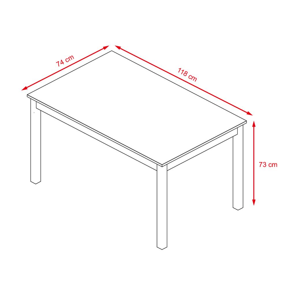 Az étkezőgarnitúra 1x étkezőasztalt + 4x étkezőszéket tartalmaz.