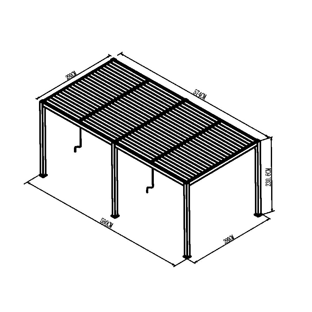 Extra nagy és tágas design: 5.8 x 3 m-es méreteivel ez a pergola ideális választás nagy teraszokra és kertekbe.