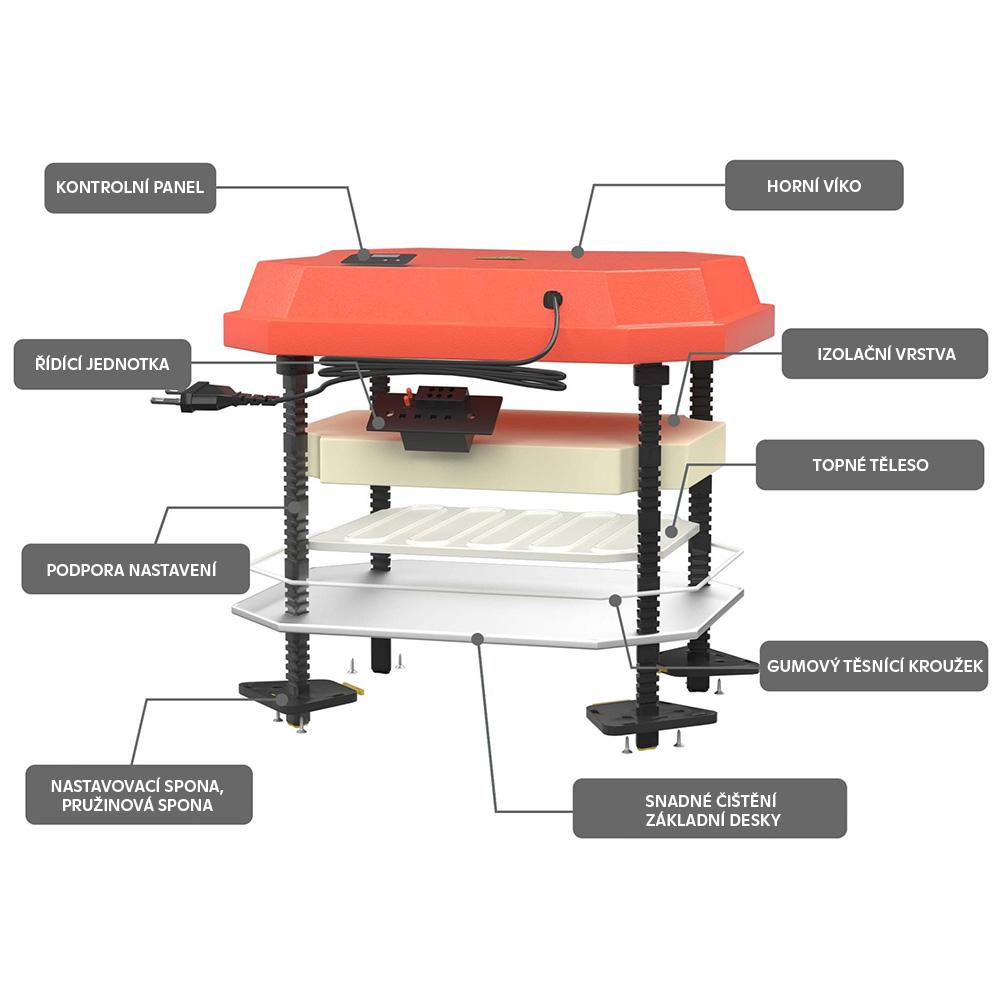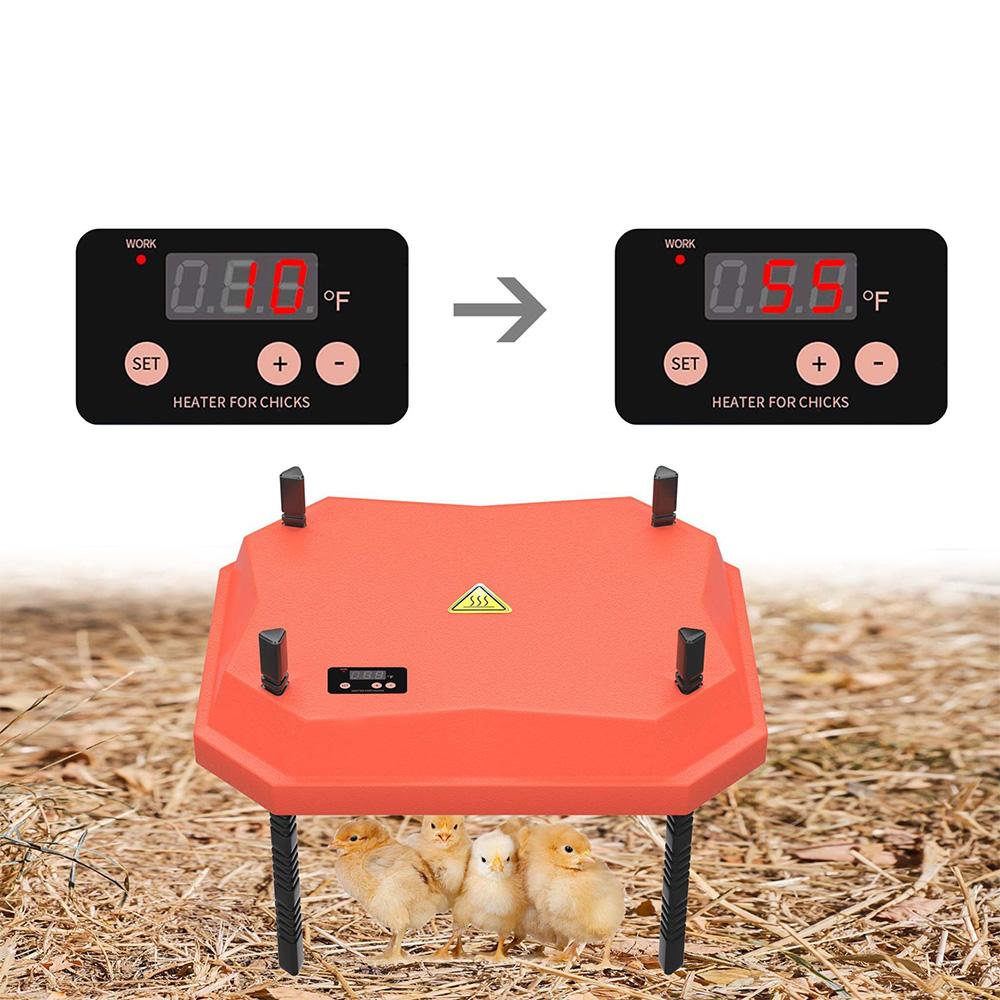 Amikor a kiscsibék megnőnek, a lábak magasságának beállításával csökkenthető a hőmérséklet. A lap hőmérséklet-szabályozással és kijelzővel is fel van szerelve. A flexibilis szabályozó segít a csibék leszoktatásában a fűtőlapról, és tökéletesen megfelel az ingadozó külső hőmérsékletnek.