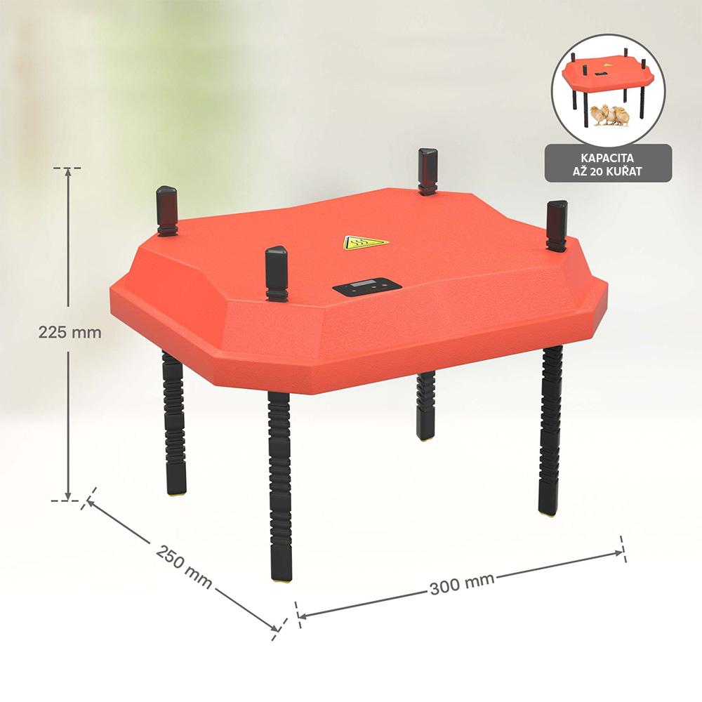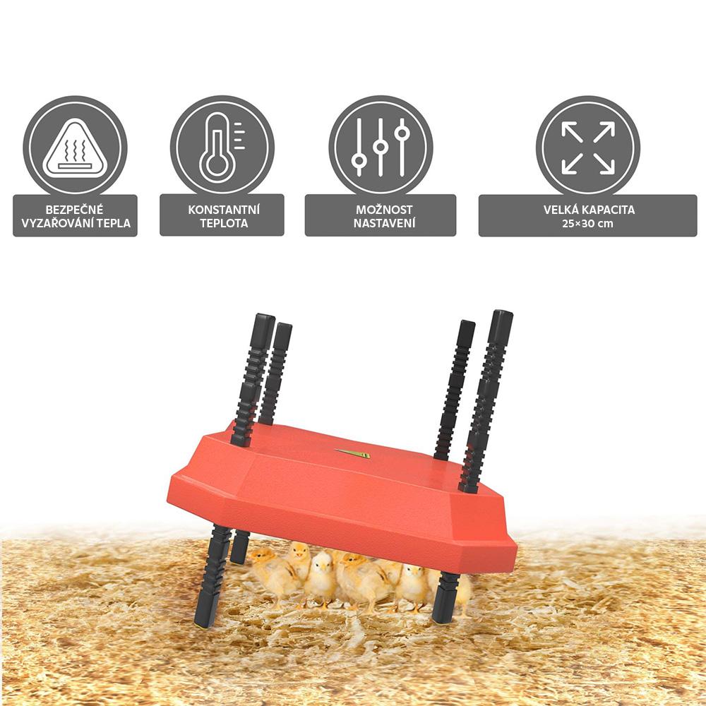 - 25 x 30 cm-es fűtőlap, maximum 20 kiscsibe befogadására alkalmas