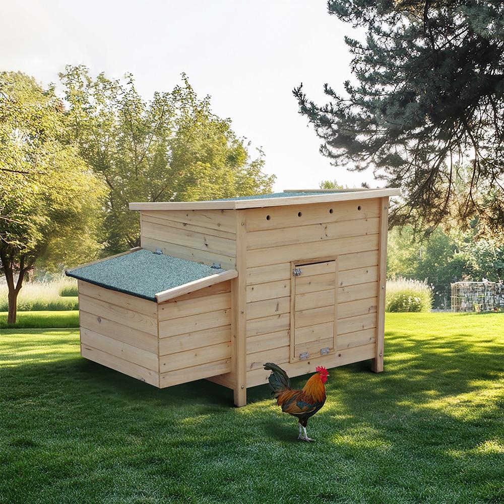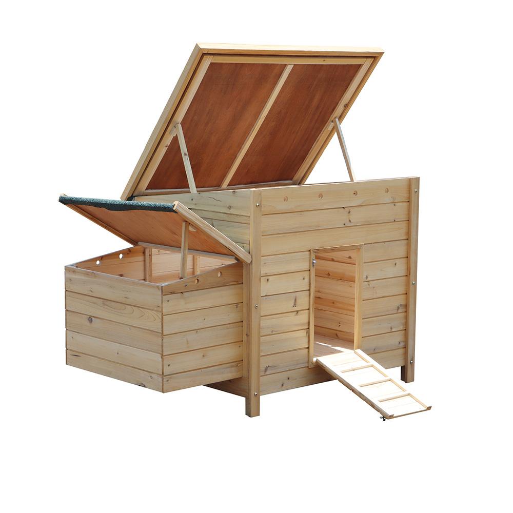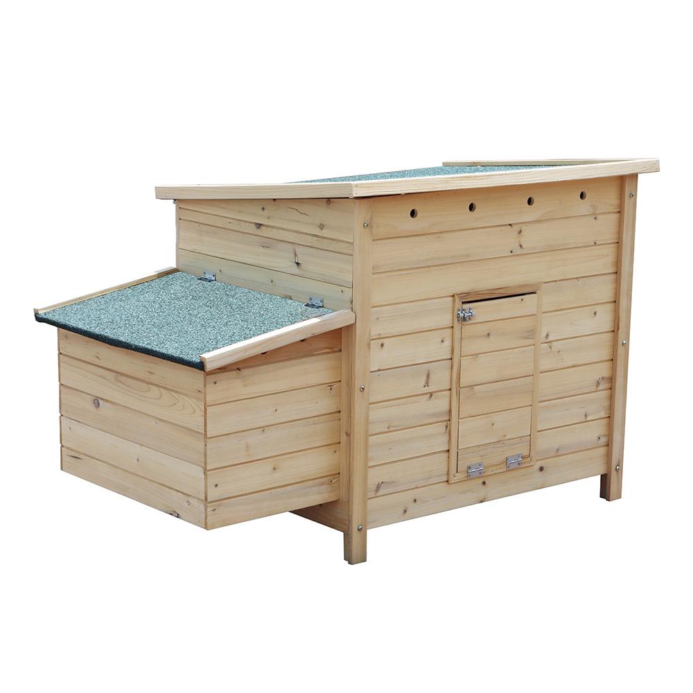tyúkól egy oldalsó tojóházzal van felszerelve a tojásrakáshoz. A tyúkól nyitható teteje megkönnyíti a hozzáférést a tisztítás és karbantartás során. Ezáltal a tyúkól kitakarítása egyszerű és gyors.