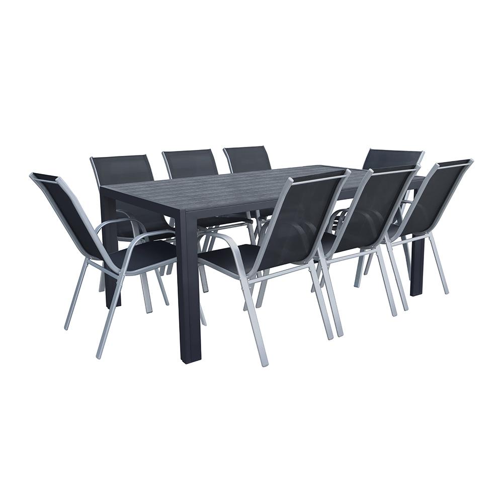 A készlet a következőket tartalmazza: 1x Viking XL asztal, 8x Alina szék