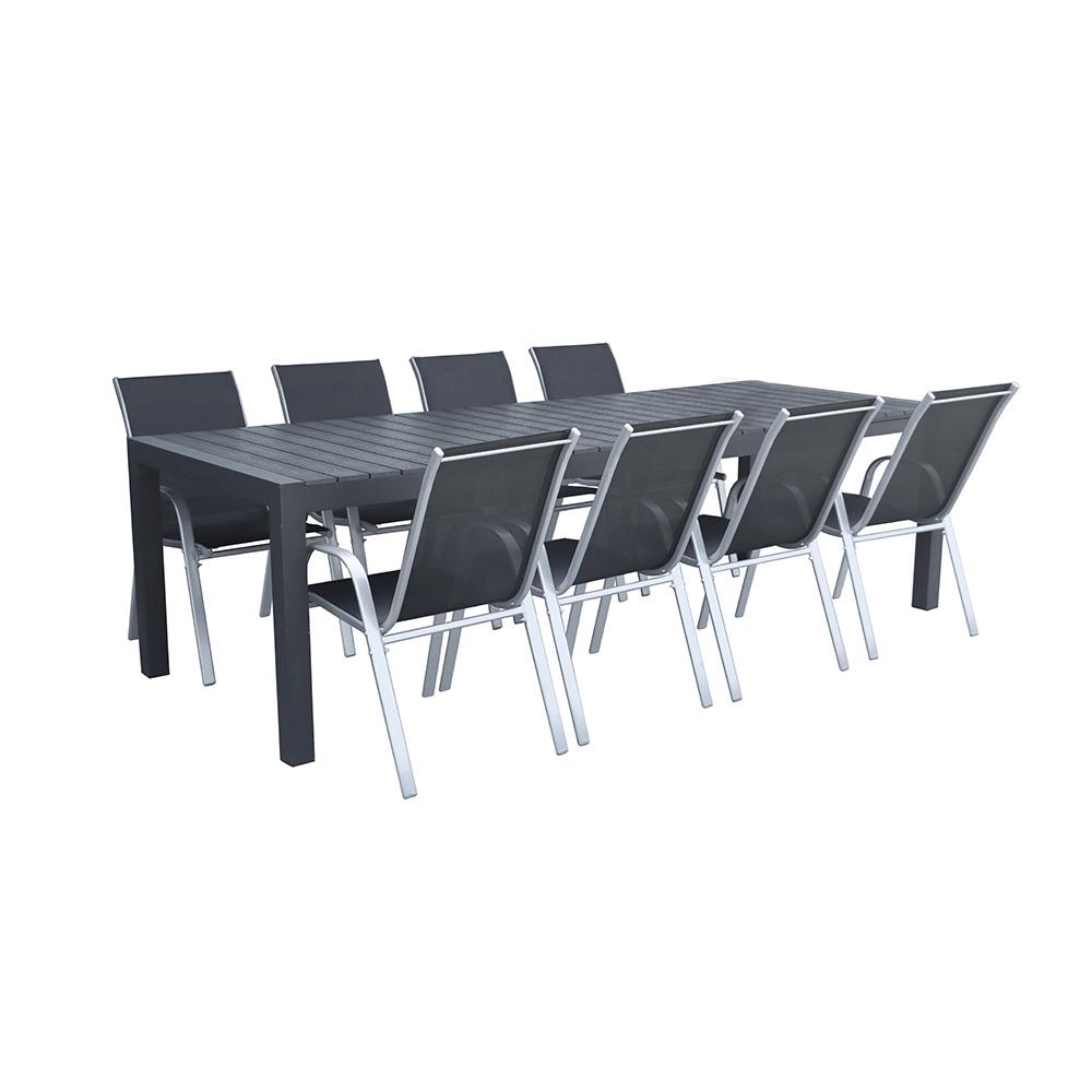 A készlet a következőket tartalmazza: 1x Viking XXL asztal, 8x Alina szék