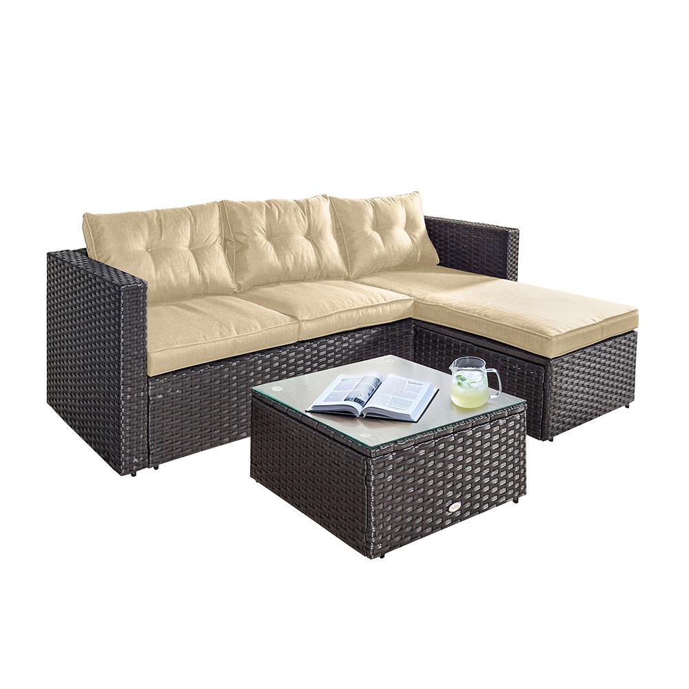 ELISE kerti sarok ülőgarnitúra - barna rattan bézs párnákkal