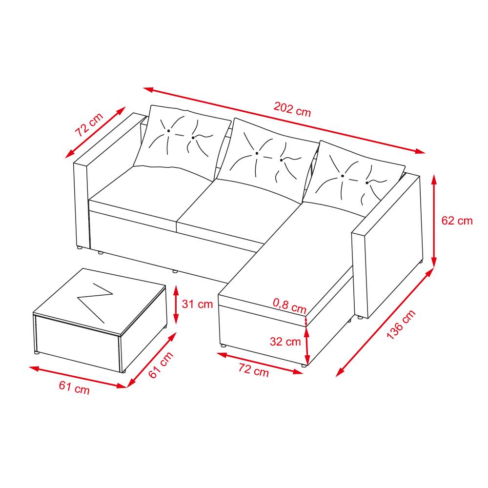8 cm vastag párnákkal vannak ellátva, amelyek elegáns és légies megjelenést kölcsönöznek a szettnek, és maximális kényelmet biztosítanak hosszabb ülés esetén is. A bézs szín ráadásul remekül kombinálható fával, zöld növényekkel és világos textíliákkal.