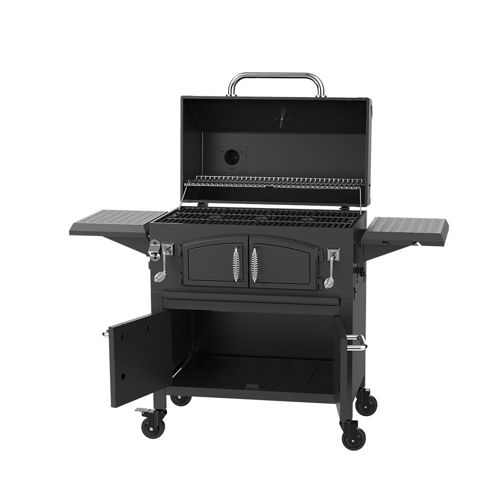 szénre készült, magasságban állítható, fogantyúkkal ellátott krómozott rács a legapróbb részletekig átgondoltak. Ha pedig több szénre van szükség, a