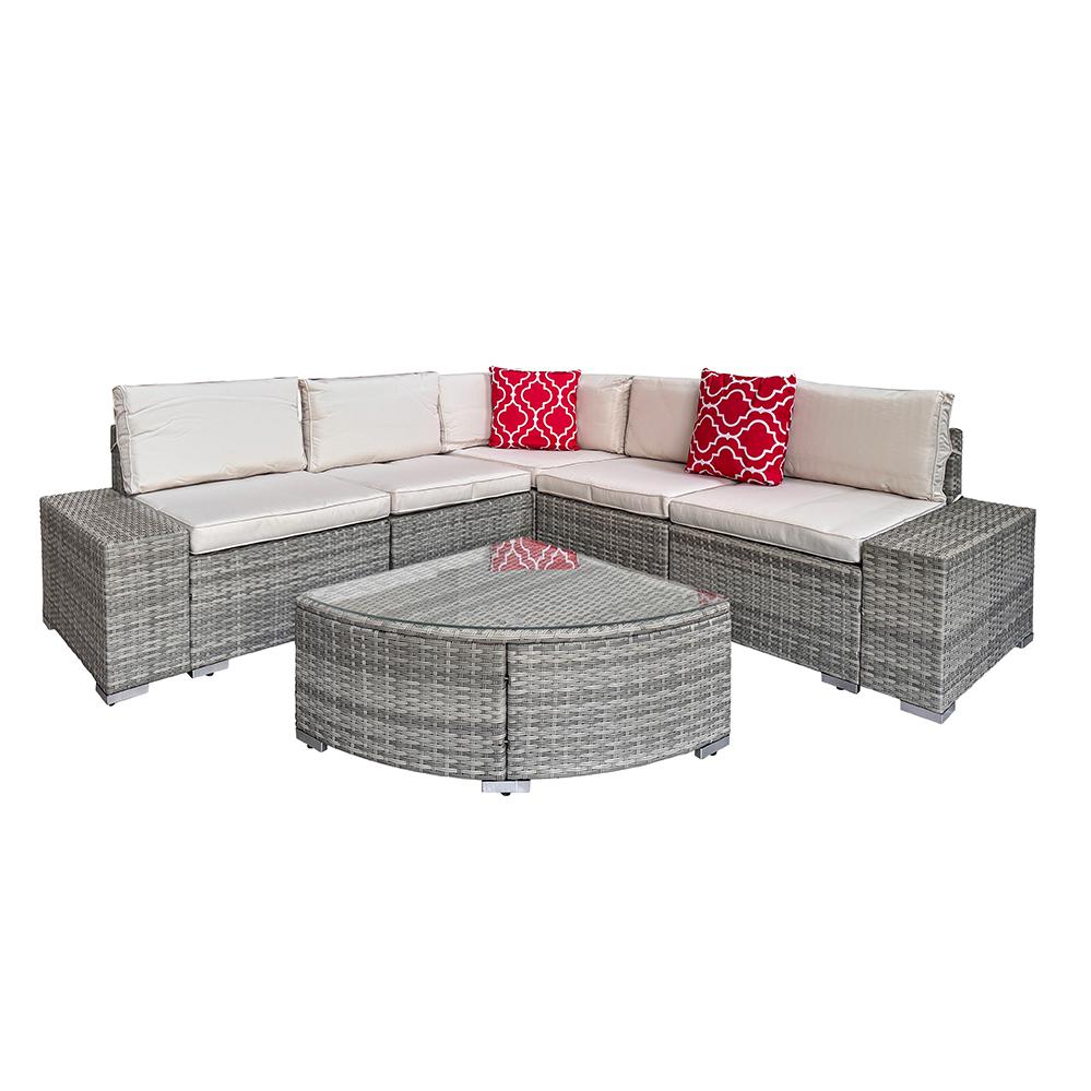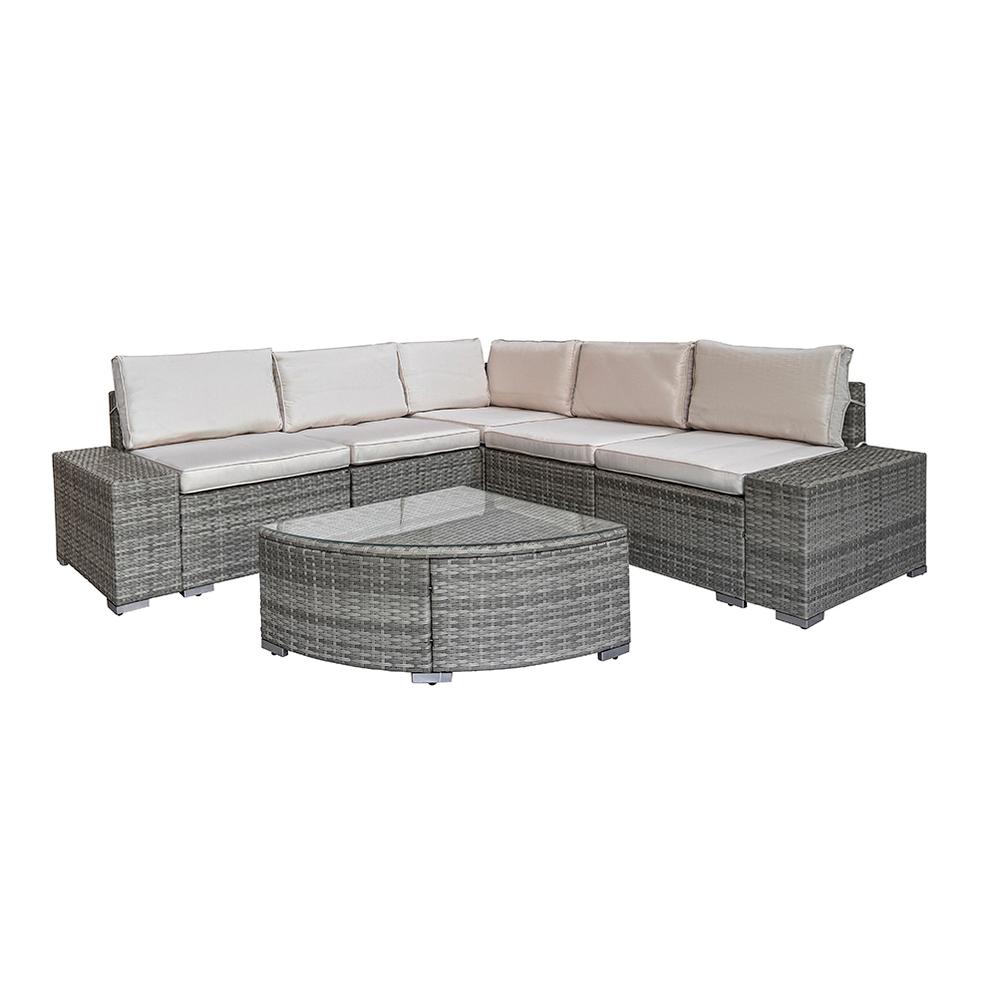 Avenberg AZURE rattan sarokgarnitúra – szürke rattan bézs párnákkal