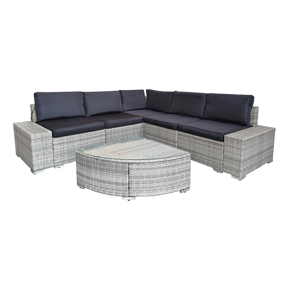 Avenberg AZURE rattan sarokgarnitúra – szürke rattan fekete párnákkal