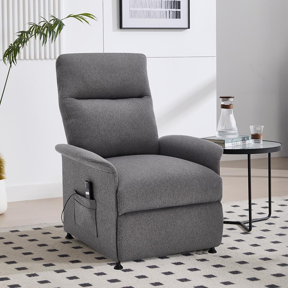 Az elegáns szürke színű huzat ellenálló, ugyanakkor puha tapintású, így hosszabb ülés esetén is kényelmes lesz. Ez a relaxációs fotel karcsú, diszkrét megjelenésű, így szépen beleillik a modern enteriőrbe.