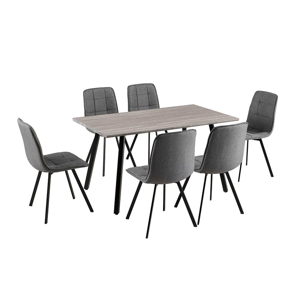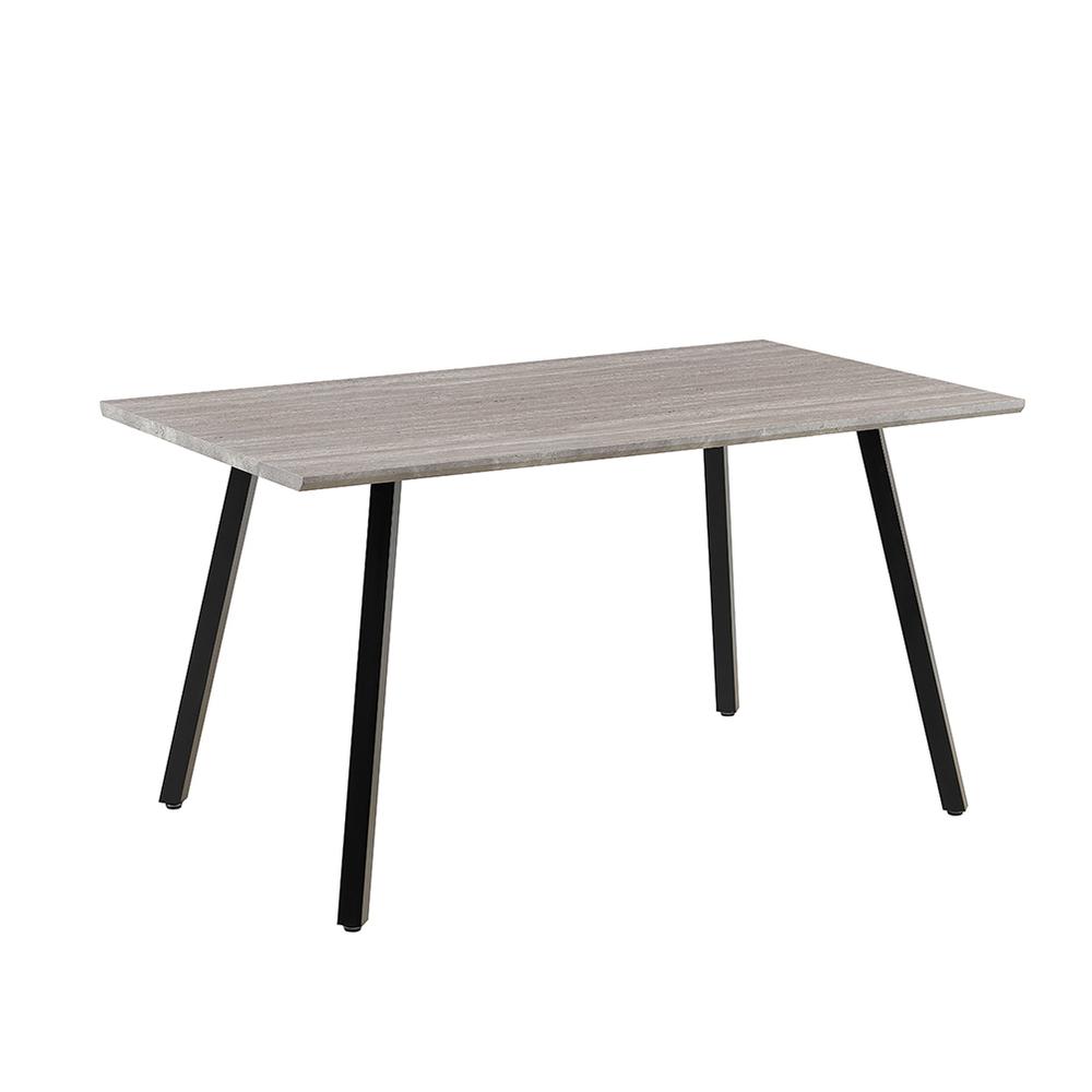 A szürke dekorral ellátott asztallap és a robusztus fekete fém lábak erős és stílusos alapot képeznek. A 25 mm vastag MDF asztallap melamin fóliával van bevonva, amely ellenálló és könnyen tisztítható.
