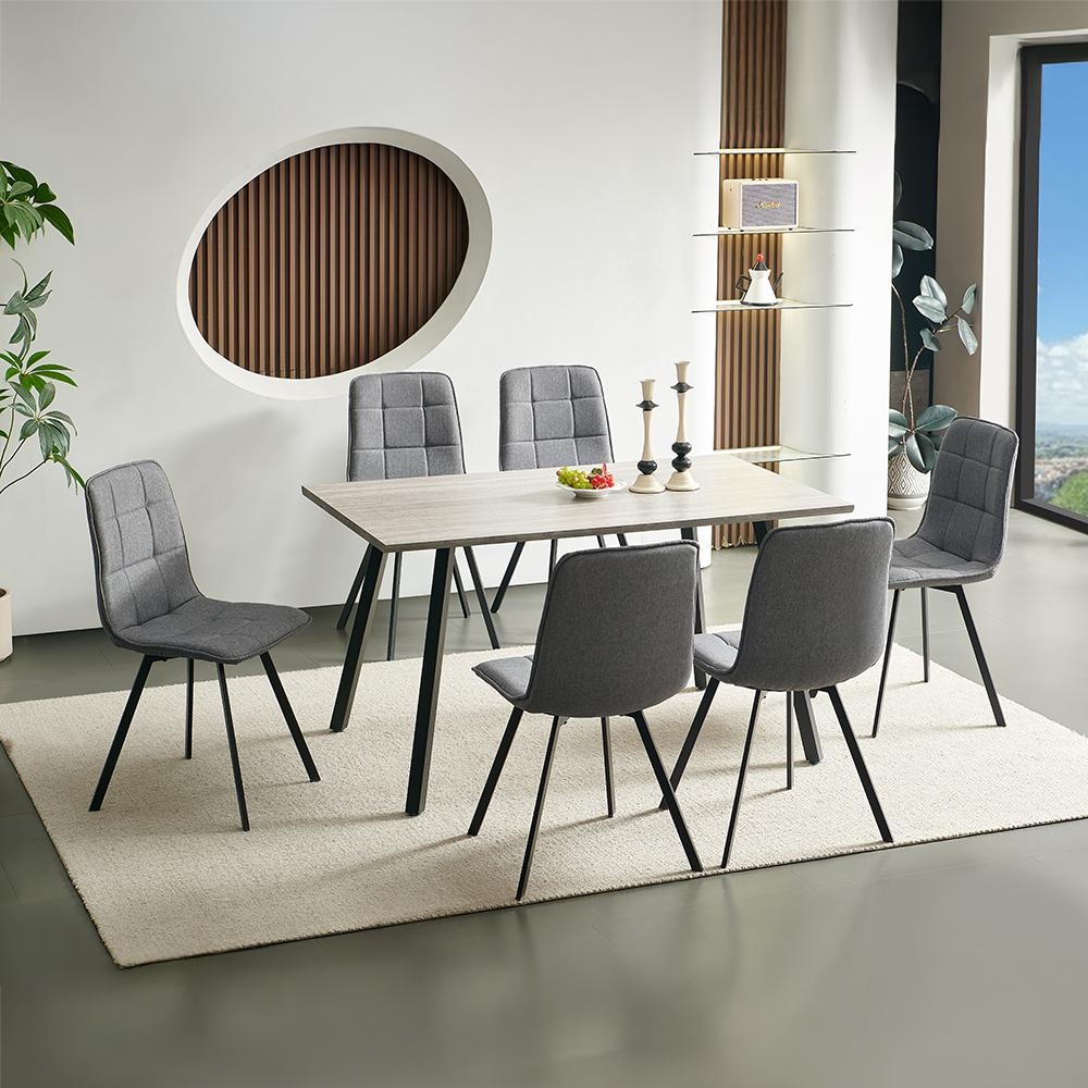 A semleges színeknek és az időtálló anyagkombinációnak köszönhetően az étkezőgarnitúra modern és klasszikus enteriőrbe egyaránt illik. A 6 fő számára tervezett