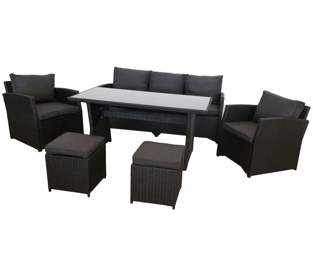 A strapabíró fekete műrattan, az erős acélszerkezet és a 7 cm vastag, antracit színű párnák nemcsak kényelmet biztosítanak, hanem hosszú élettartamot is, felesleges karbantartás nélkül. És az edzett üveglappal ellátott asztal? Könnyen elbírja a nehéz edényeket és a teli tányérokat is.