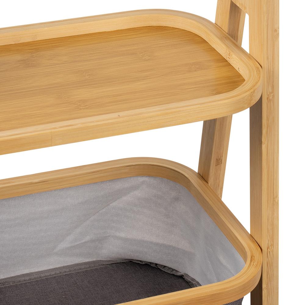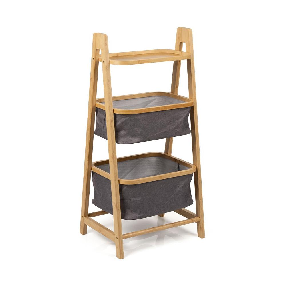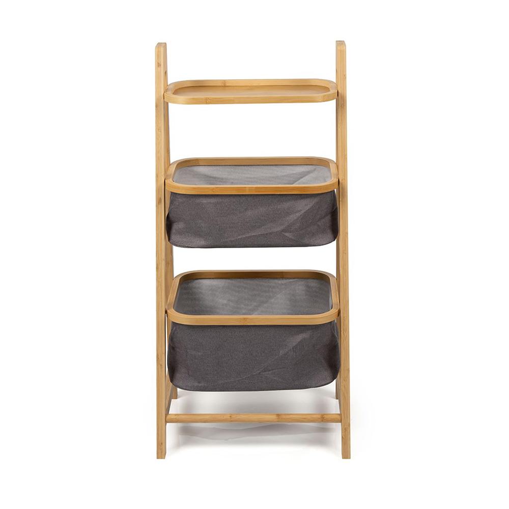 természetes bambuszból készült – erős, stabil és egyben könnyű. A szürke kosarak letisztult és modern hatást keltenek, így a polc jól illik a fürdőszobába, a hálószobába, a gyerekszobába és az előszobába is. Akár a konyhába is, ha további tárolóhelyre van szüksége az apróságok számára.