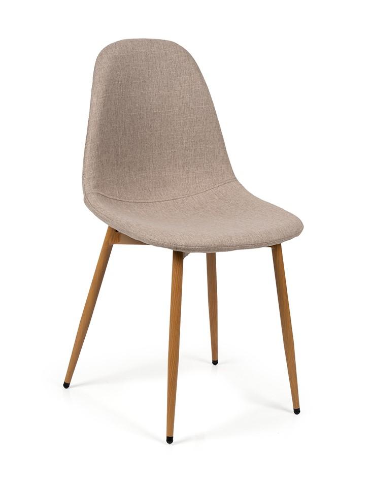 4 db bézs színű, szövetkárpittal ellátott étkezőszék, amelyek könnyed és elegáns hatást keltenek. Az erős acélkonstrukció (vastagság