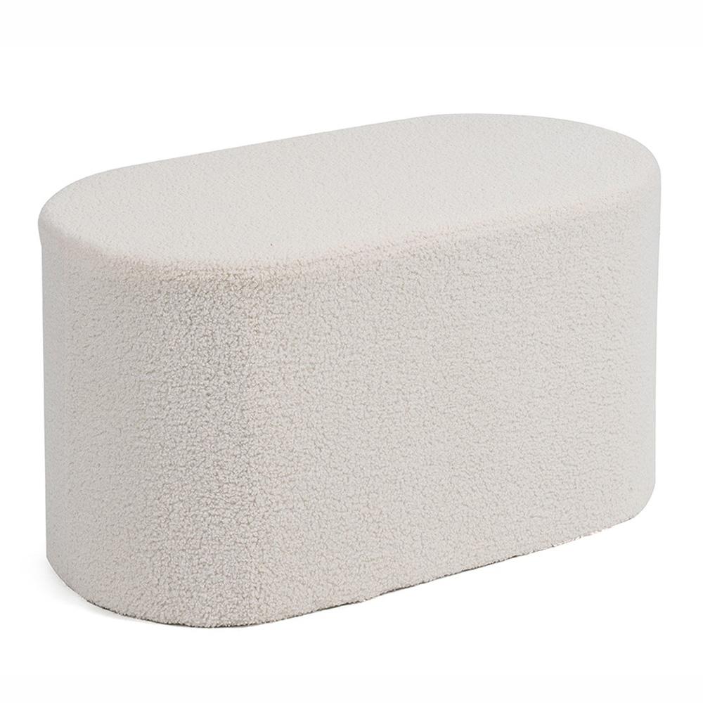 ovális puff bouclé kivitelben stílusos kiegészítő a nappaliba, a hálószobába és az előszobába is. A finoman texturált