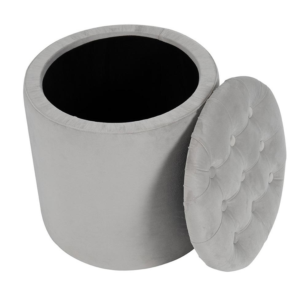 A világosszürke színű, tárolóval ellátott puff praktikus segítő a nappaliban, a hálószobában és az előszobában is. Kényelmes ülőhelyet biztosít, lábtartóként is használható, és egyúttal takarókat, párnákat vagy játékokat is elrejthet benne. A puff