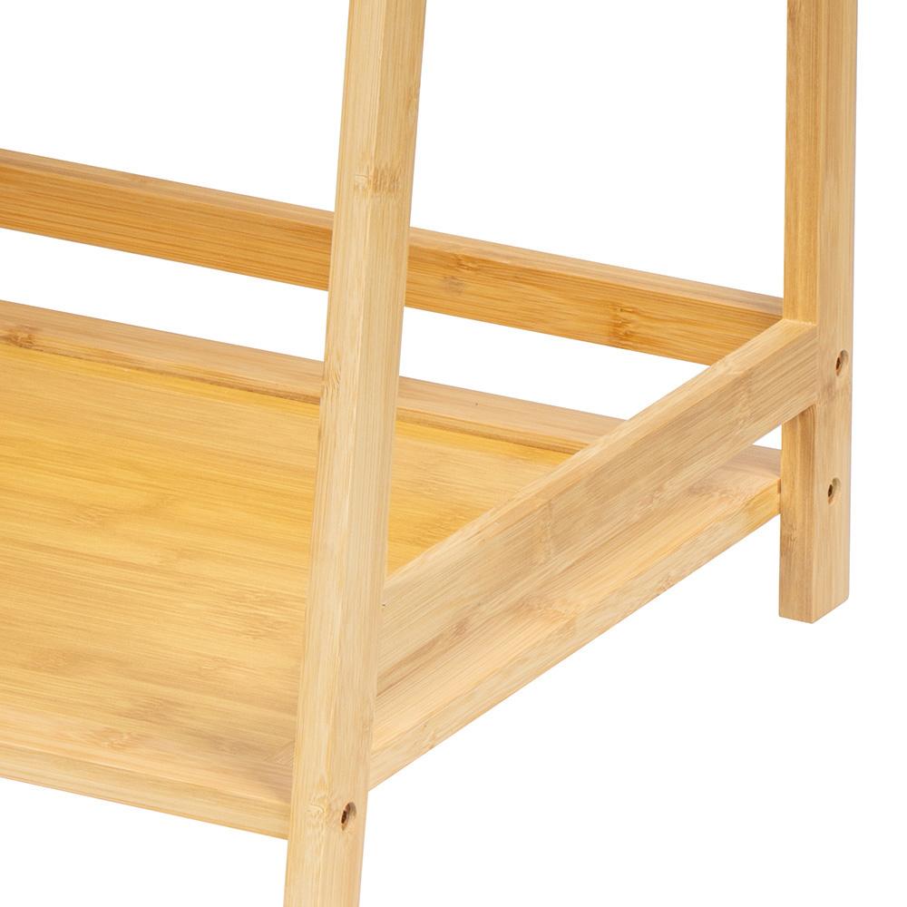 Stílusos „létra” bambuszpolc – ferde kialakítású, helytakarékos és remekül mutat a fürdőszobában és a nappaliban is.