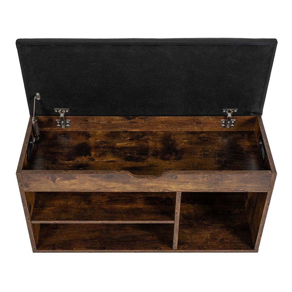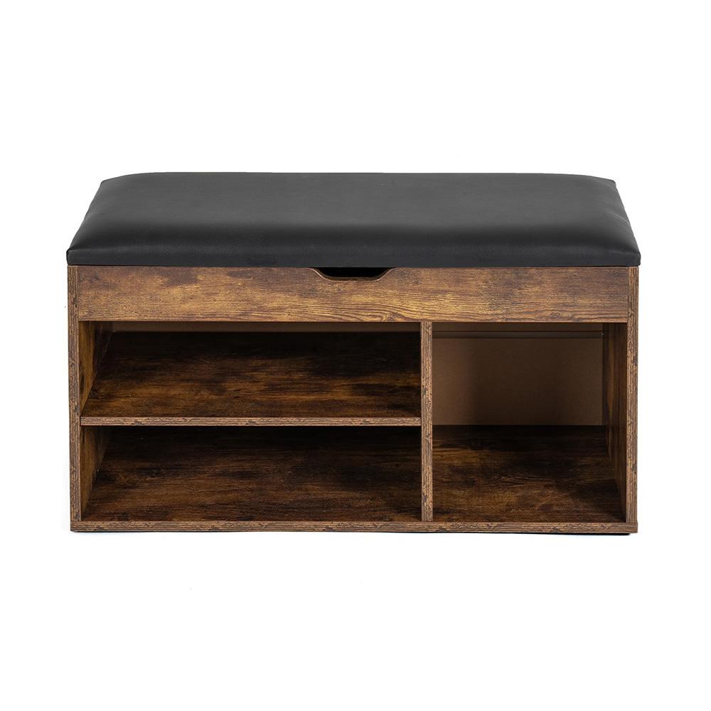 A belső elrendezés helyet biztosít cipőknek és apróságoknak is, amelyeket jó az előszobában kéznél tartani. A sötétbarna dekor fekete ülőrésszel kombinálva modern hatást kelt, és indusztriális, valamint klasszikus enteriőrbe is jól illik.