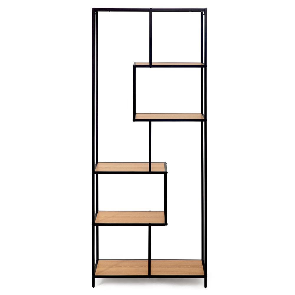 AVENBERG polc masszív acélszerkezettel és természetes dekorú polcokkal ideális a nappaliba, a dolgozószobába és az előszobába is. Légies hatású, mégis stabil és praktikus – akár könyvek, dekorációk, növények vagy tárolódobozok számára.