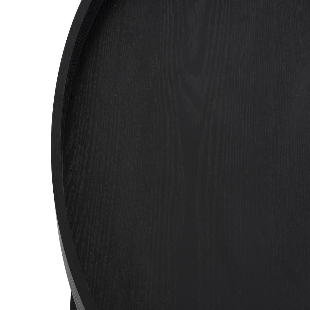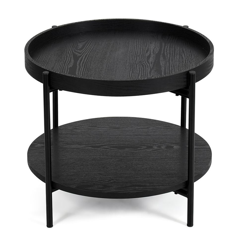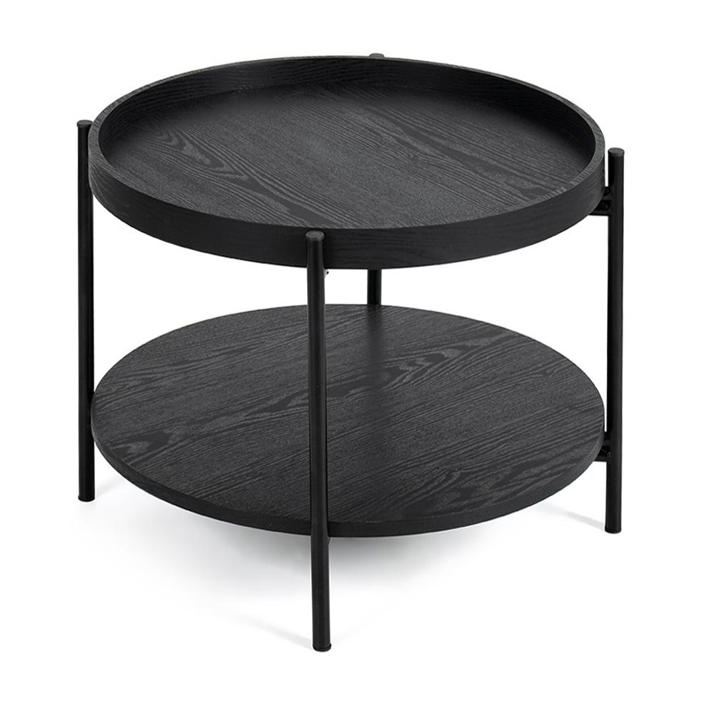 Elegáns fekete dohányzóasztal, amely rendet teremt a nappaliban, miközben remekül is mutat. A fekete dekorú, kerek MDF asztallap és a masszív acélszerkezet modern bútordarabot alkot, amely jól illik kanapé mellé, fotel mellé és kisebb terekbe is.