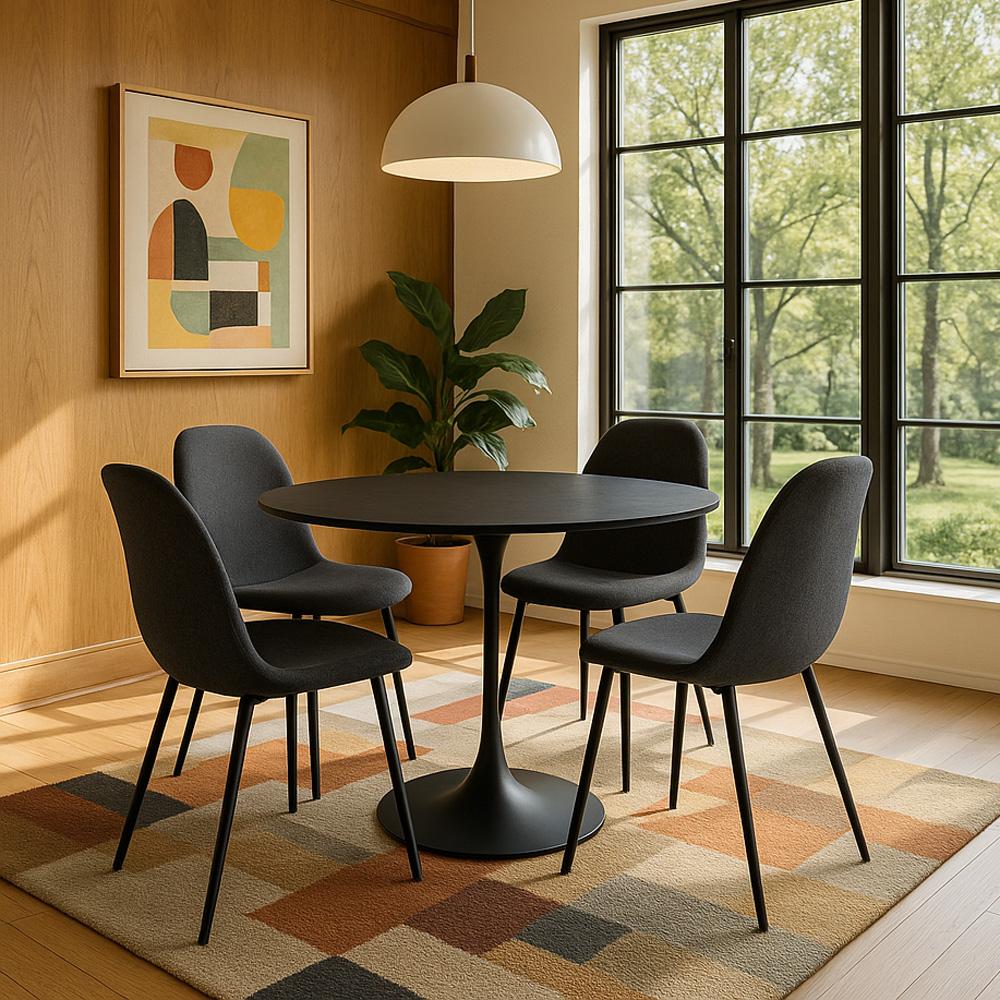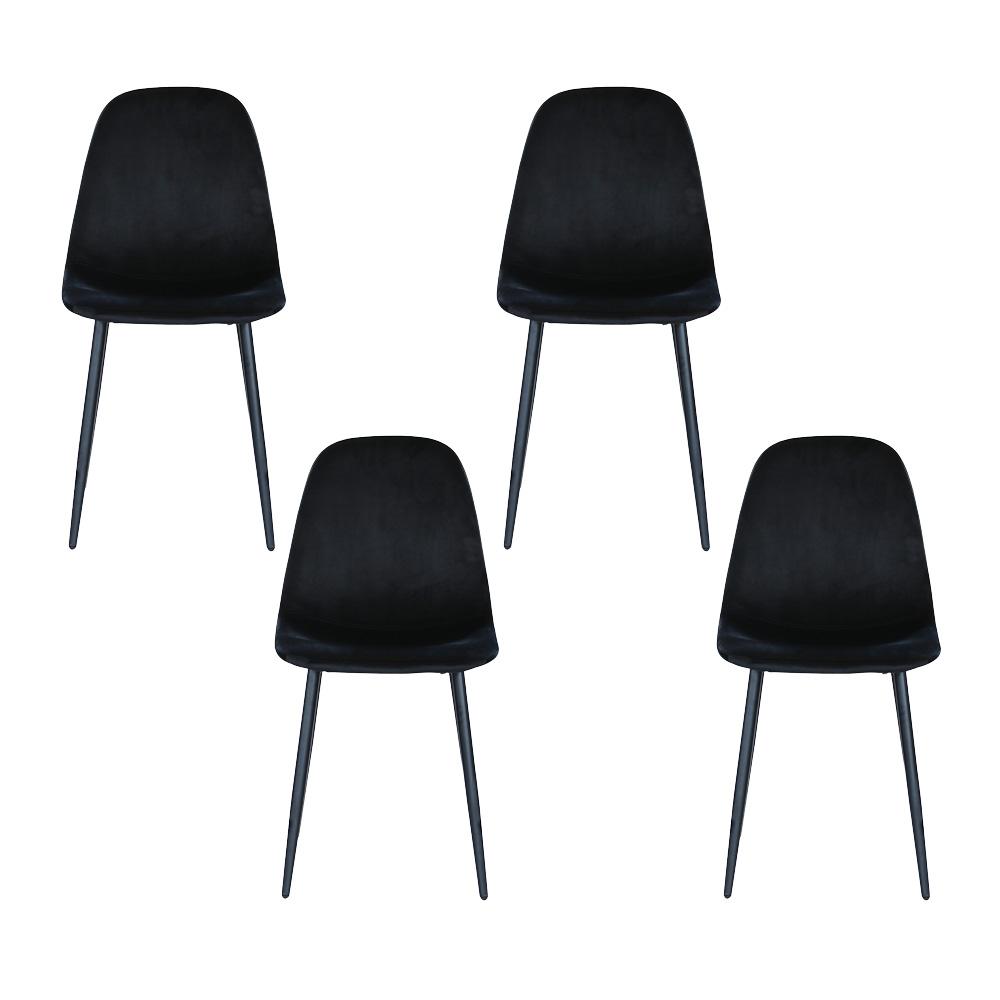 A fekete, bársonykárpittal ellátott étkezőszék fémből készült, állítható lábaival egyszerű választás, ha stílust és stabilitást szeretne felesleges bonyodalmak nélkül.