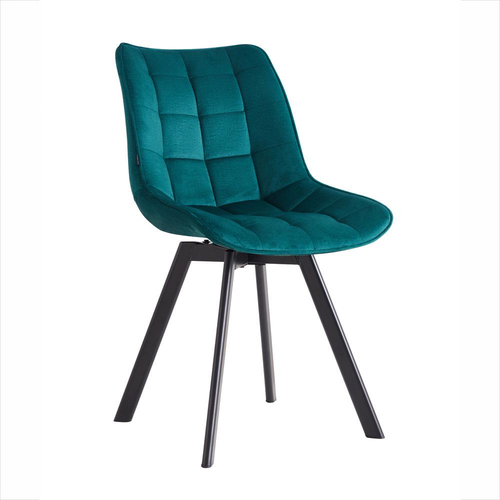 AVENBERG NOLA kék étkezőszék – bársonykárpit, formázott ülőrész és stabil, fekete színű acél lábak.