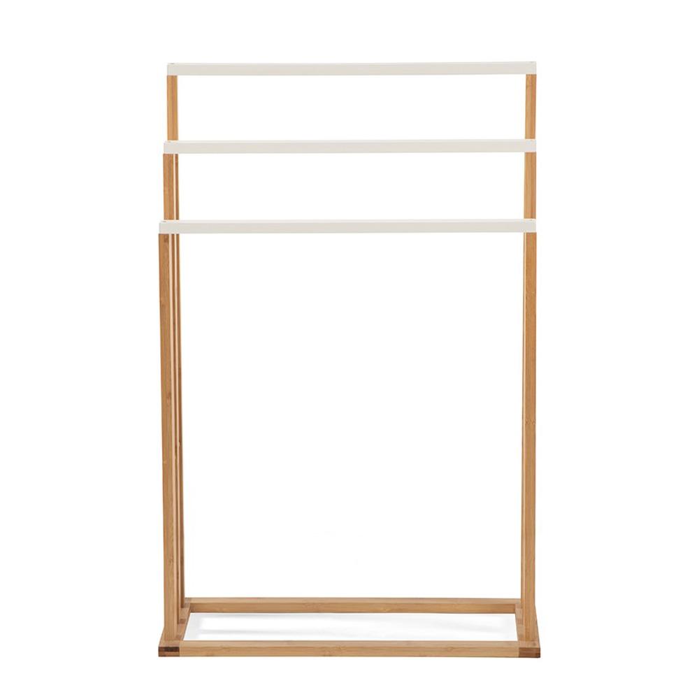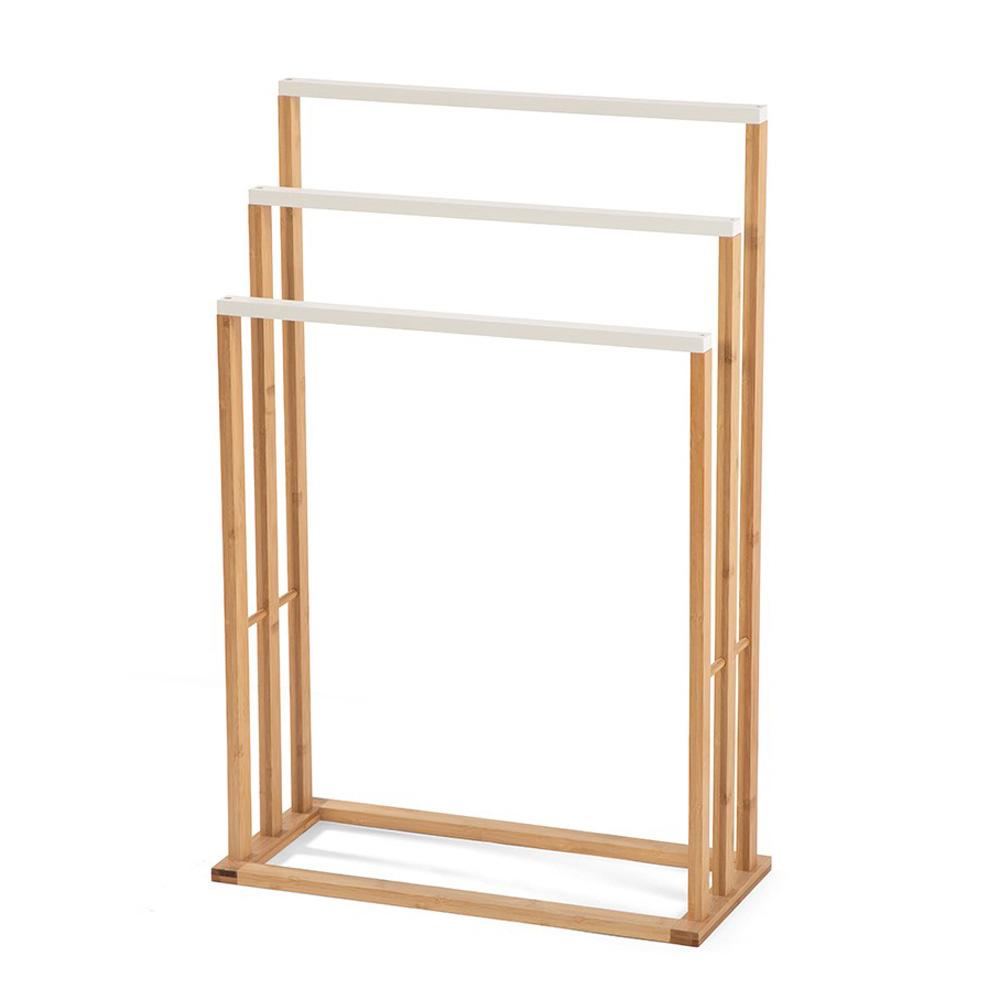 AVENBERG MAID bambusz törölközőtartó – praktikus állvány natúr + fehér kombinációban a törölközők mindennapi szárításához és tárolásához.
