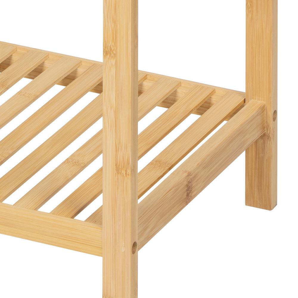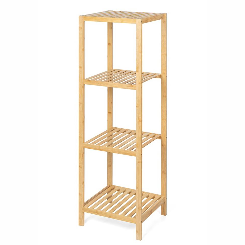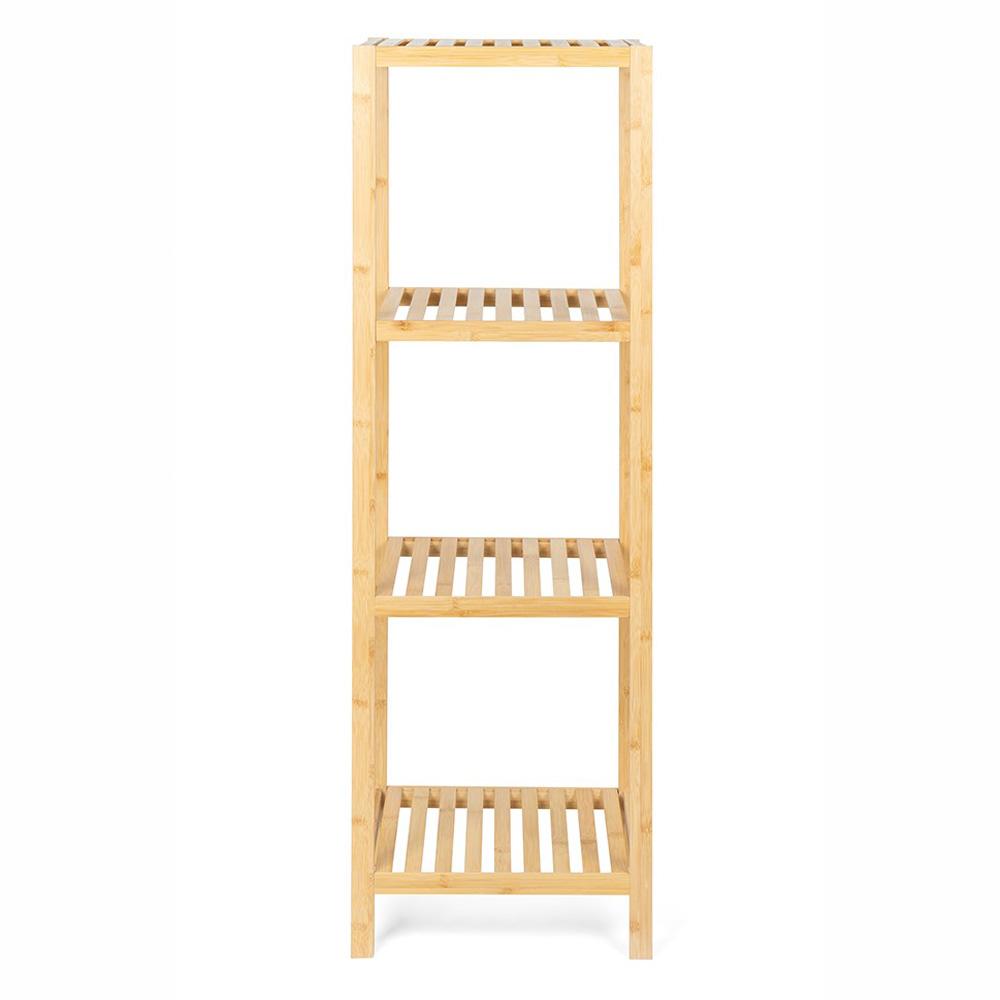 A BAMBU FLEX négy tárolószintet kínál kompakt alapterületen, ezért ott is remek választás, ahol kevés a hely. A természetes bambusz megjelenés otthonosabbá teszi az enteriőrt, a polc pedig jól használható törölközők, kozmetikumok, háztartási apróságok, növények és dekorációk tárolására is.
