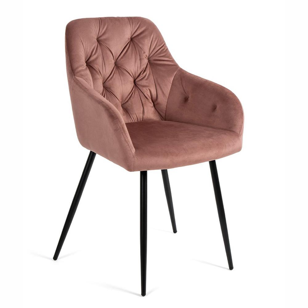 A rózsaszín kárpitozott székek finom, modern hangsúlyt adnak az enteriőrnek. A párnázásnak köszönhetően hosszabb ülés során is kényelmesek – és remekül illenek a fekete asztalhoz, mert elegáns kontrasztot alkotnak.