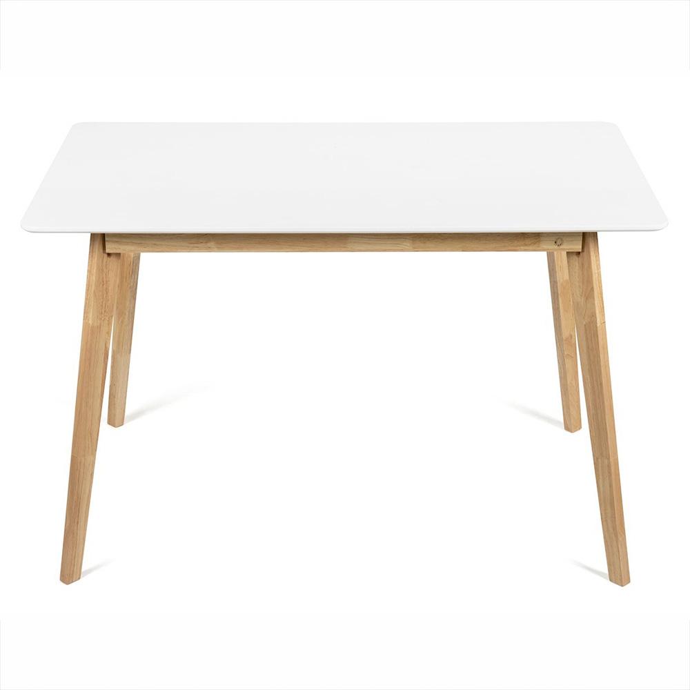 AVENBERG SKANDI 120 asztal fehér MDF asztallappal és természetes színű lábazattal légies hatású, és remekül illik modern, illetve skandináv enteriőrbe is.
