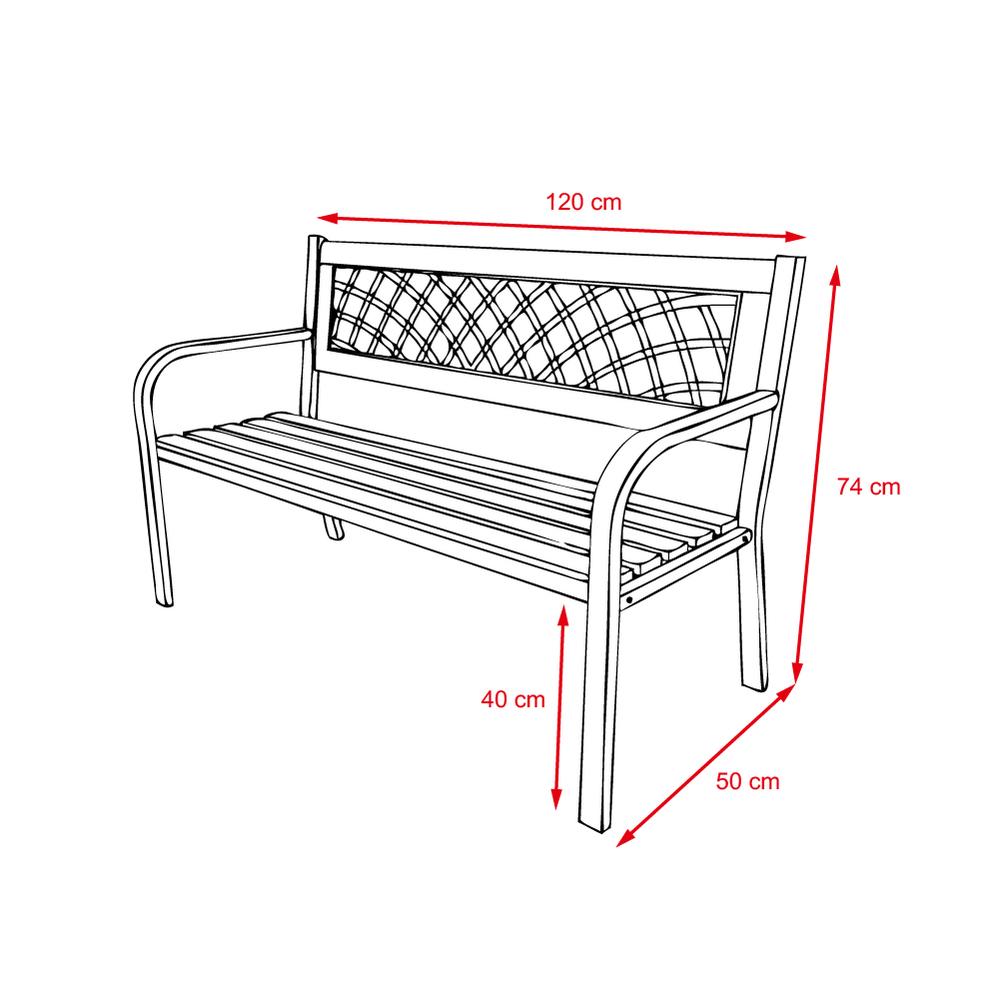 kerti bútor egyszerre lehet praktikus és stílusos is. Az oldalak masszív fémkonstrukcióját lakkozott keményfából készült ülőfelület egészíti ki. Az egyszerű műanyag háttámla díszítés érdekes arculatot ad a padnak.